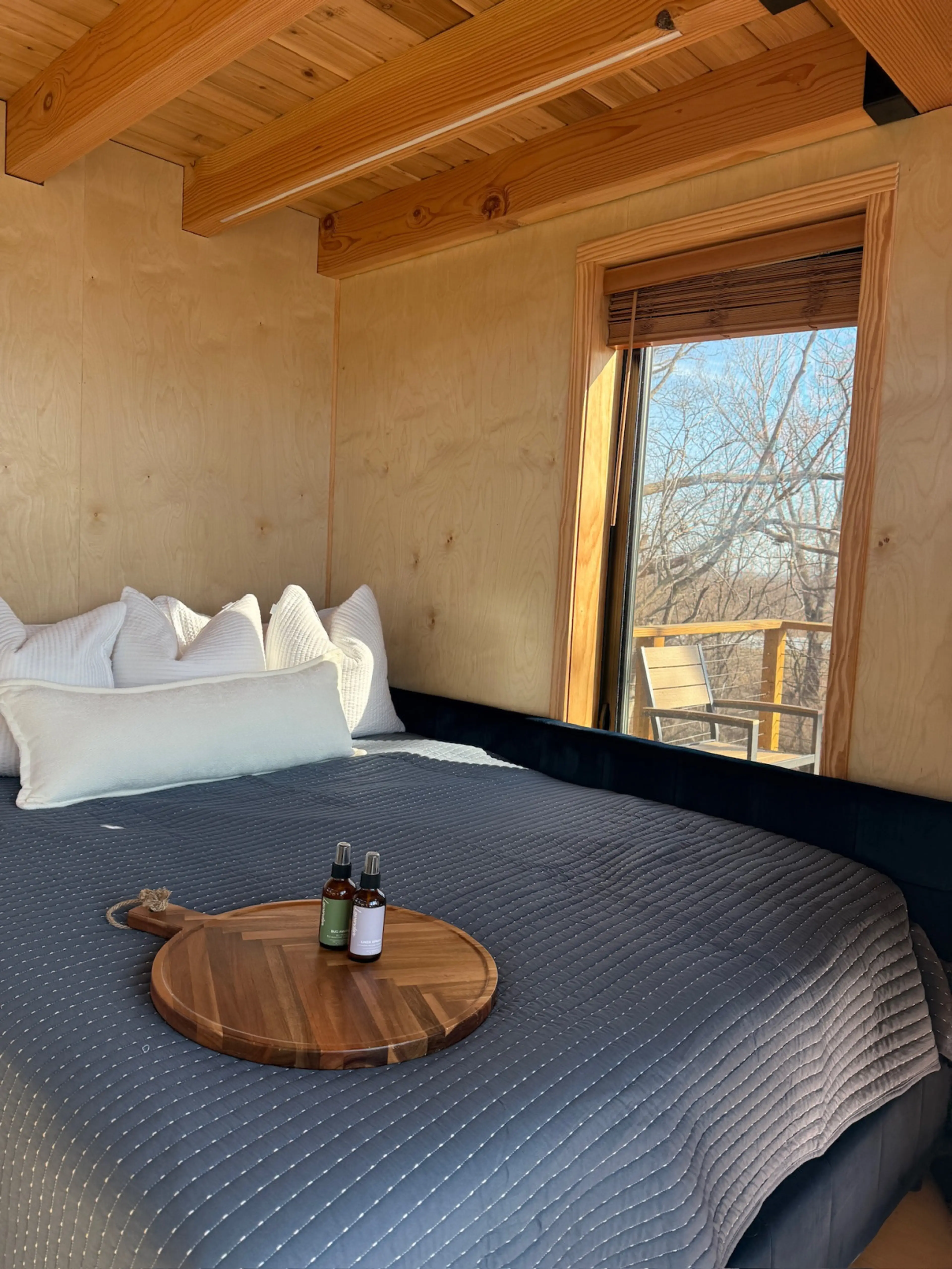 Perched high above the farm, the Hilltop Treehouse offers sweeping views of 4,000+ lavender plants below. Inside, enjoy heated floors, a cozy fireplace, and a well-appointed kitchenette with a stove, microwave, and air fryer. Rinse off in the rainfall shower, then climb to the loft and fall asleep i...